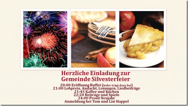Samstag, 12. Januar 2019, 18:30 Uhr - 21:00, Begegnungsraum oben